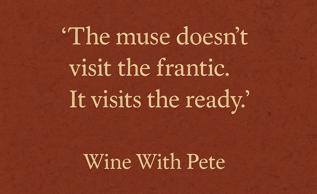 It took years to realize that the muse doesn't respond to brute force. Creativity doesn't arrive on command—it slips in when conditions are right. On a walk, in the middle of a workout, folding laundry. It rarely looks like work, until suddenly, it is.